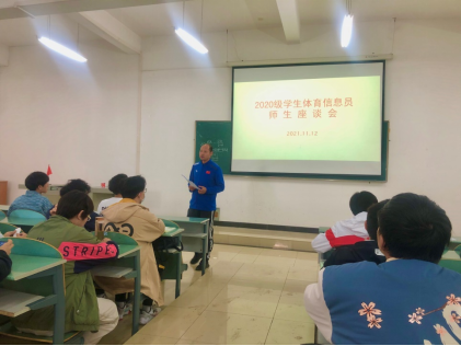 (通讯员李郑迪)1112日中午,体育部在钟楼215会议室召开2021-2022学年第1学期2020级体育信息员师生座谈会。2020级全体体育学生信息员参会,会议由大学体育二教研室主任童为城主持。