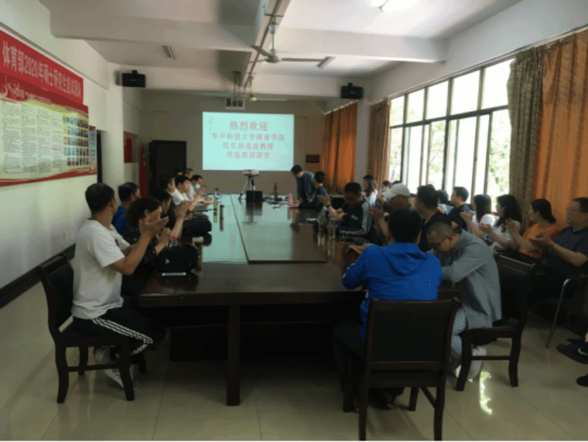 (通讯员刘飞平)5月7日上午10点,在体育部二楼会议室华中科技大学体育学院院长孙竞波教授以“加强体教融合 实现国家体育战略发展”题目作了一场精彩的学术报告,体育部全体教师和硕士研究生参加了活动。