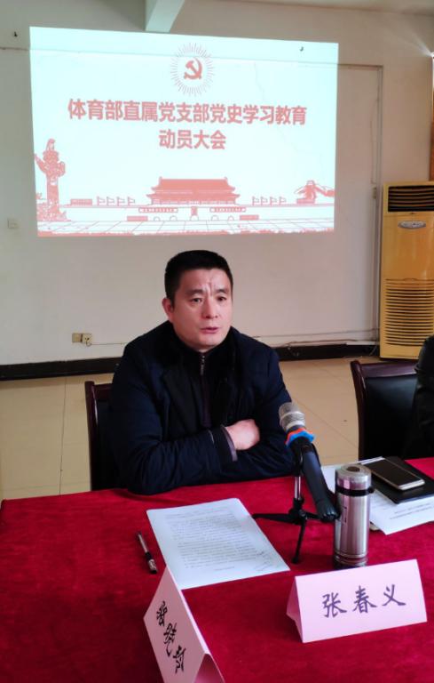 会上,直属党支部书记张春义就党史学习教育的具体安排作解释说明,他强调全体党员要以高度的责任感、强烈的使命感将党史学习教育融入体育教育教学、运动训练、科研等中心工作中,实现学校自身高质量发展贡献力量。