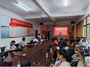(通讯员 吴东)7月1日上午,庆祝中国共产党成立100周年大会在北京天安门广场隆重举行,习近平总书记发表重要讲话,体育部认真组织全体教职员工在二楼会议室集中,准时收听收看庆祝中国共产党成立100周年大会直播,聆听习近平总书记重要讲话。
