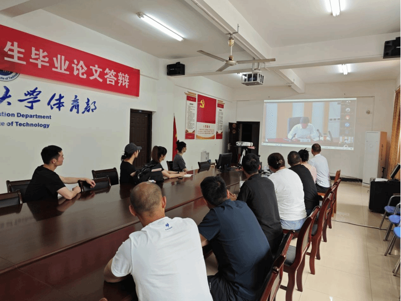 体育部党员师生在流芳校区二楼会议分会场共同观看直播。