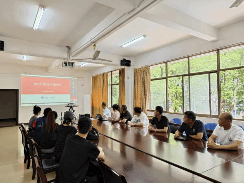 (通讯员 吴东)5月31日上午,校党委书记汪伟为全校党员师生讲授党纪学习教育专题党课,体育部在流芳校区二楼会议室分会场组织党员师生收看直播。校党委副书记(正厅长级)潘慧明主持会议。