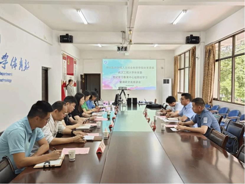 (通讯员 吴东)6月5日,湖北医药学院体育部主任朱红军、副主任李承龙、教学秘书王锋斌一行到我校体育部联组开展党纪学习教育专题学习暨调研交流活动。体育部直属党支部书记、主任万莉莉,副主任徐素华,副主任范东芳,体质健康测试中心主任黄林,运动训练中心、场馆中心主任(兼)潘丛华,办公室主任汪涵,党务干事、主任助理吴东,教学秘书陈琰参加会议。万莉莉主持会议。
