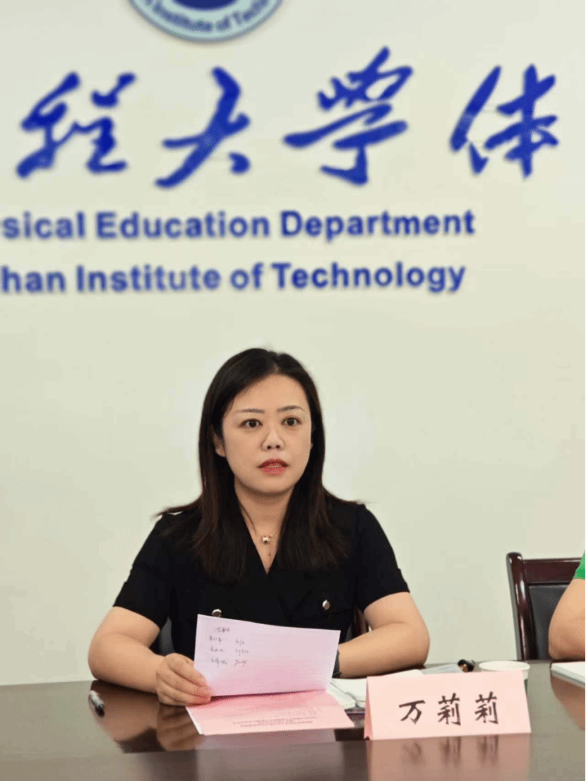 万莉莉致欢迎辞,对兄弟院校的到访表示热烈欢迎,并向来访人员介绍了参会人员、体育部基本情况以及党建、教学、体质健康测试、场馆、研究生招生方面工作情况。