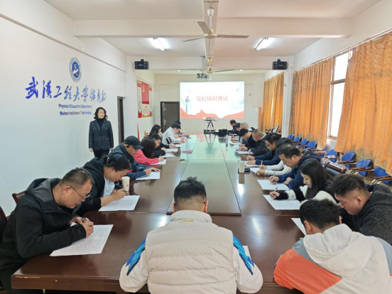 (通讯员 吴东)11月12日14:30,体育部直属党支部在流芳校区二楼会议室组织开展2025年11月份“支部主题党日”活动,活动主要进行纪律专题学习和应知应会党规党纪知识测试。全体党员同志参加活动。直属党支部书记、主任万莉莉主持活动。