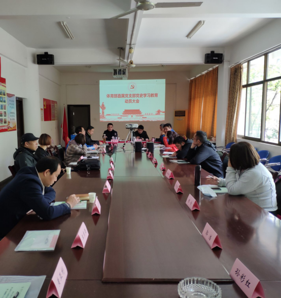 (通讯员 吴东)4月8日下午,为深入学习习近平总书记在党史学习教育动员大会上的重要讲话精神、学校党委关于开展党史学习教育实施方案文件精神,体育部在流芳校区体育部二楼会议室召开党史学习教育动员大会,对直属支部委员会党史学习教育进行集中动员部署,直属党支部书记张春义主持会议作动员讲话,理论学习中心组成员、全体党员教师参加会议。