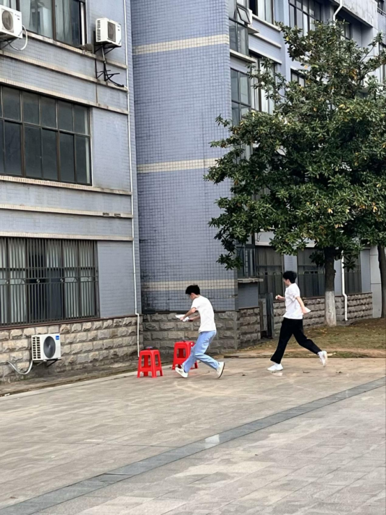 我校健儿在比赛中超越瞬间