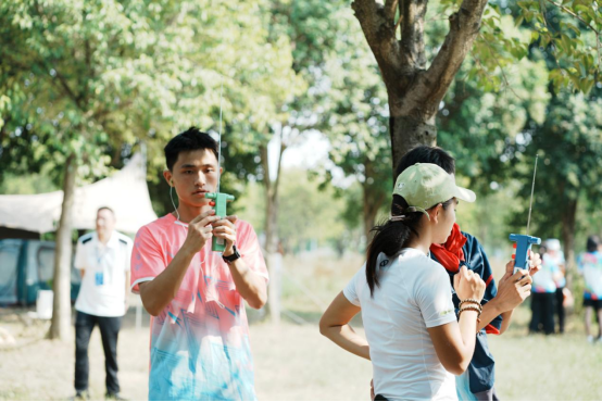 运动员们赛前进行无线电测向校波