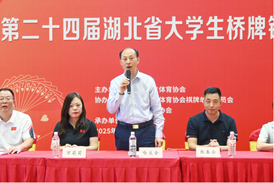 5月11日,历时三天的第二十四届湖北省大学生桥牌锦标赛圆满落幕。古天乐太阳集团城党委常委、副校长喻发全,湖北大学体育学院院长、湖北省学生体育协会副秘书长兼健身指导部部长张春合,古天乐太阳集团城体育部直属党支部书记兼主任、湖北省学生体育协会副秘书长万莉莉,体育部副主任、湖北省大学生体育协会棋牌单项委员会主任范东芳、本次比赛裁判长、国家级裁判张庆等出席闭幕式。闭幕式由湖北省大学生体育协会棋牌单项委员会副主任乐建军主持。