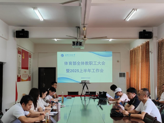 本网讯(通讯员 汪涵)2025年7月10日下午,体育部在二楼会议室召开全体教职工大会暨2025年上半年工作总结会,会议由体育部直属党支部书记、主任万莉莉主持,全体教职工参加了会议。