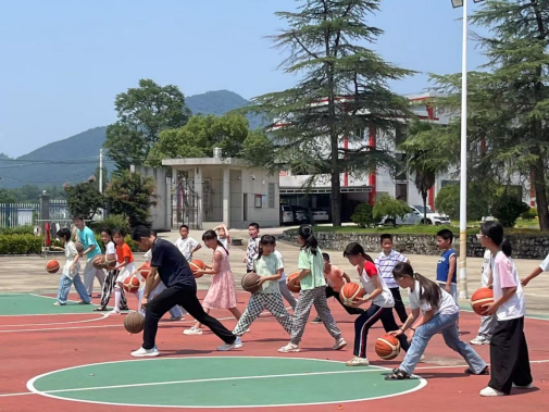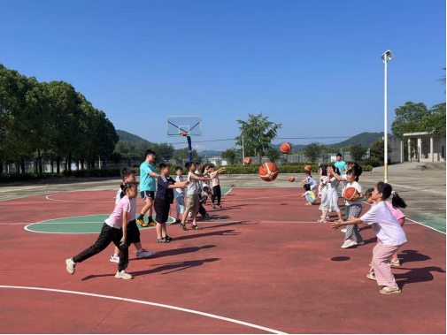 在体育青年服务队志愿者的专业指导下,篮球课上,孩子们从起初的生疏试探,慢慢学会了灵活运球、精准传球,最终能稳稳投进篮筐。训练中,他们时而为一次成功的配合欢呼,时而为失误互相鼓劲。这不仅提升了他们的肢体协调能力与团队合作意识,更让奔跑、跳跃中的汗水浇灌出对篮球运动的浓厚热爱,深刻体会到并肩拼搏的体育精神。
