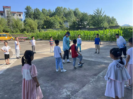 本网讯(通讯员 曹双琦) 2025年7月8日-7月11日,体育部组织暑期“三下乡”青年志愿服务队赴黄冈市罗田县白庙河乡肖家坳小学开展为期四天的体育公益课活动。本次服务队由体育部范东芳副主任、刘飞平副教授、黄明哲老师带队,体育部研究生曹双琦、王博文、亓娅楠、梁任煜、向颖、姜思岐及法商学院费宝曈共7名志愿者组成,为肖家坳小学200多名学生开展了为期四天的篮球、足球等项目的教学以及健康安全知识和科学常识的科普教育。